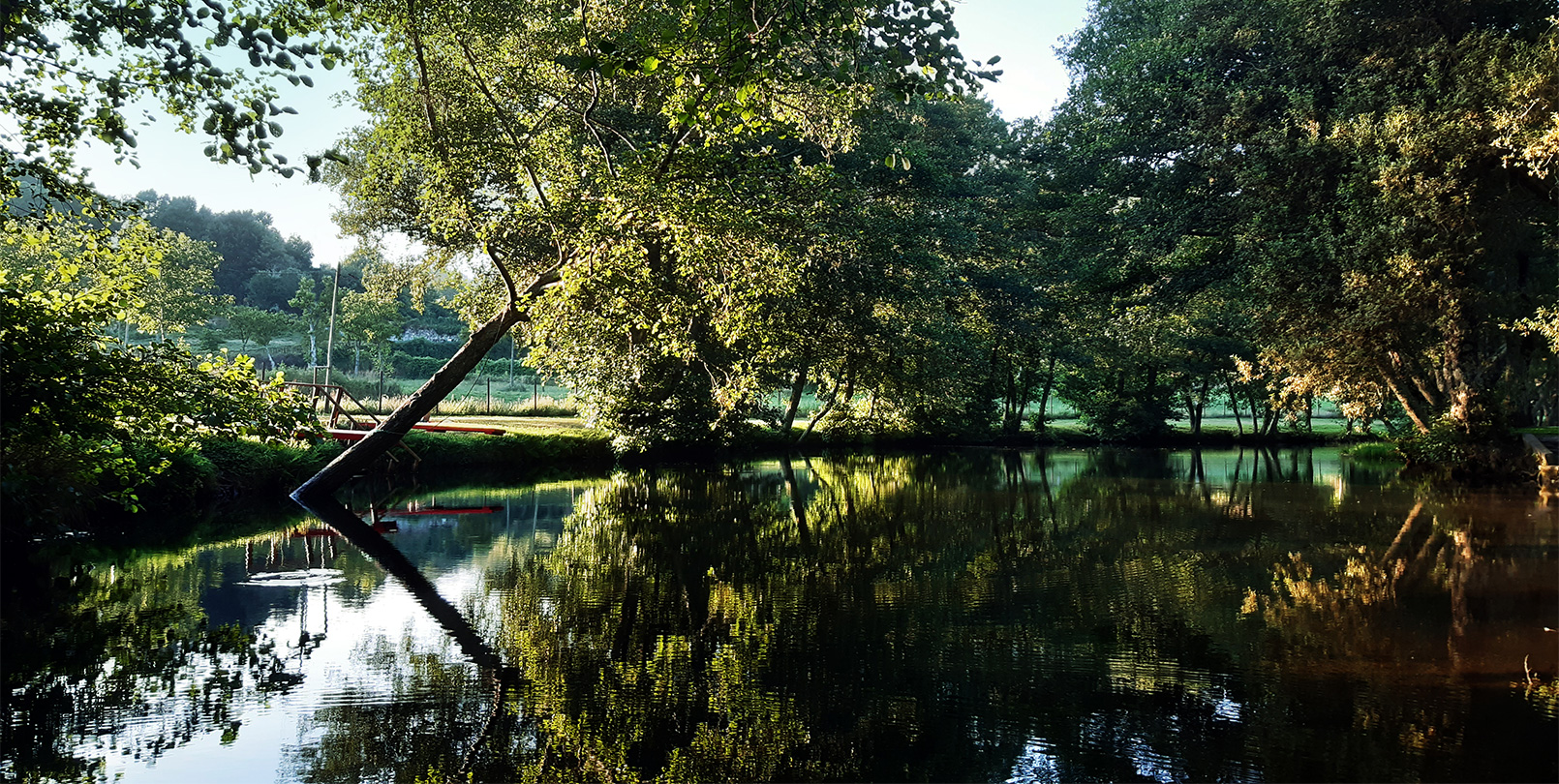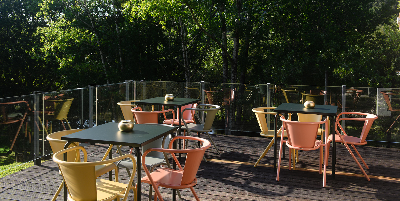 Na nossa zona exterior poderão encontrar uma esplanada, em cima da relva, perto do rio Coura, com capacidade para 30 pessoas. O espaço alberga um café e um bar, que abre logo de manhã e se estende pela noite. Pode usufruir da vista para a praia fluvial do Taboão, e relaxar nesta zona sem preocupações. |